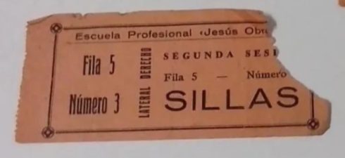 CINE DE JESÚS OBRERO.  Un gran cine (o eso me parecía a mi, que era muy txiki cuando iba cada domingo). Comentaba Mim que costaba en sus tiempos (años 50 imagino) 3 pesetas. Comentaba Mikel que cuando él iba las chicas estaban abajo y los chicos en el gallinero (yo no recuerdo eso, Rosa María comenta que arriba estaban los chicos de Jesús Obrero y abajo madres y padres con hijos e hijas y que aunque la mayor parte eran butacas, en la parte de delante ponían unas sillas plegables con precio más económico).  Esta es una entrada de dicho cine, sacada de Todocolección: