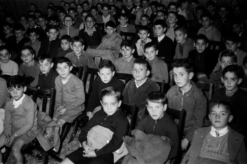 Cine del colegio SANTA MARÍA – MARIANISTAS. Salón de actos donde también se solía poner cine. Aquí dos fotos de J.M. Parra en 1948, en obras, pasadas por Jesusmari: