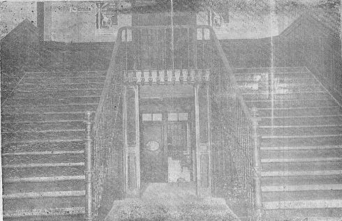 En las tres fotos a color que siguen a estas de blanco y negro, aspecto actual del interior (foto Iñaki Armentia)  y aspecto actual del exterior, fachada y escalera de acceso al salón (fotos propias).