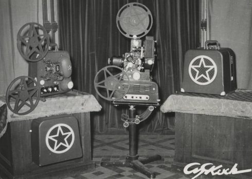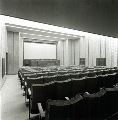 En su Aula de Cultura de la Calle Fueros proyectaba películas habitualmente (Foto de Schommer en 1963, de Photoaraba, pasada por Fernan Echevarria):