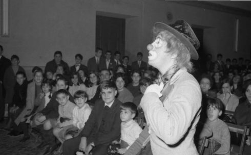 Residencia Provincial de NUESTRA SEÑORA DE LAS NIEVES: Lo que en 1907 se inauguró como Asilo Provincial de Santa María de las Nieves («manicomio», Casa Cuna para huérfanos y Asilo para pobres), en 1964 pasó a ser  Residencia de ancianos, Hogar infantil y Sanatorio psiquiátrico. Ese año hicieron, sobre lo que fueron locales de la imprenta Provincial, un gran salón de actos con un patio de butacas para 300 personas, con camerinos y sala de proyector de cine. En esta foto, muy borrosa, se medio aprecia dicho salón de actos (Pensamiento Alavés, 5 de agosto de 1964, gracias a Josemari D. de Cerio por pasármela))