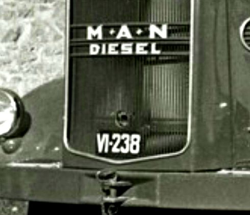 VI-4683 Camión MAN diésel . Foto pasada por Guillermo Góngora. Tanto esa como la segunda foto puesta por mi, son sacadas de fotogramas de una película casera de Juanma Alfaro, de 1959, sobre las obras de General Álava (Fondo Juan Alfaro del Archivo de Álava)